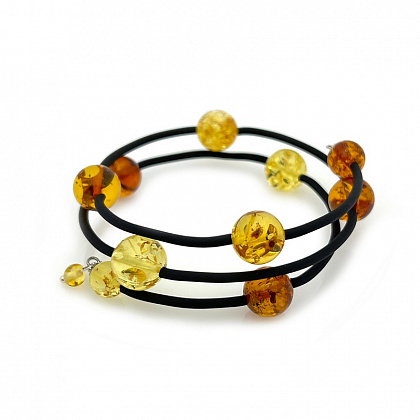 Браслеты кожаные и каучуковые с янтарем